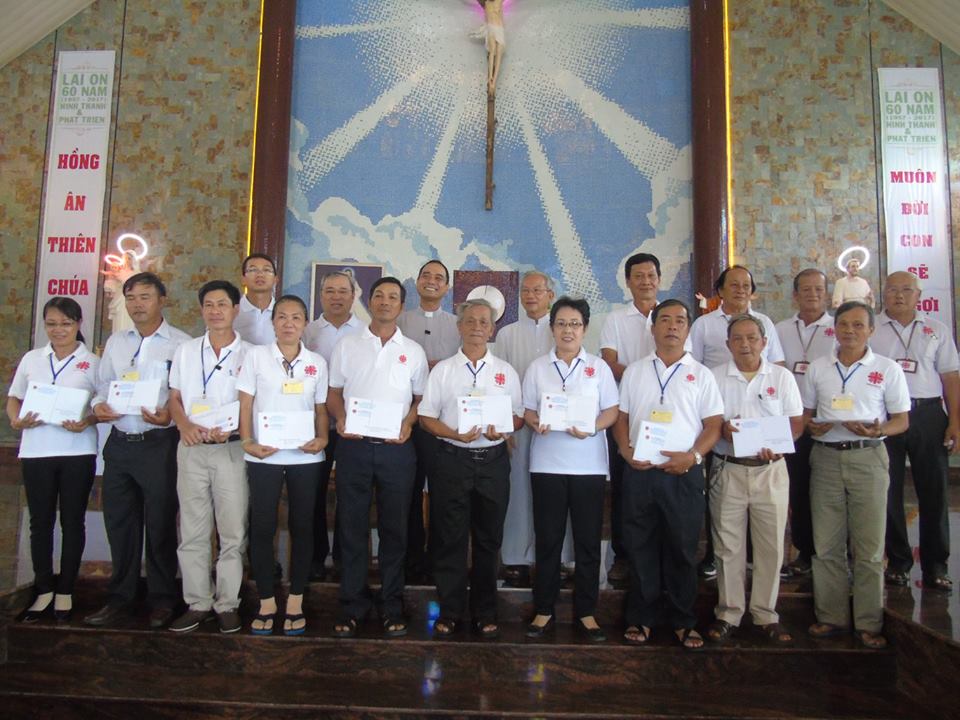 Chiều ngày 17/06/2018 vừa qua, tại Giáo xứ Lai Ổn, Giáo Hạt Hòa Thanh, Giáo phận Xuân Lộc đã diễn ra buổi lễ bế mạc khóa Tập huấn cơ bản Chăm sóc bệnh nhân. Khóa học đã diễn ra trong bốn ngày 09,10 & 16, 17 tháng 06 năm 2018, do cha Antôn Nguyễn Chân Hồng và quý thầy Dòng Gioan Thiên Chúa phụ trách giảng huấn. Với mục đích trang bị cho những Hội Viên mới gia nhập vào Gia Đình Chăm Sóc Bệnh Nhân những kiến thức cơ bản về kỹ năng chăm sóc và thăm viếng các bệnh nhân tại nhà.