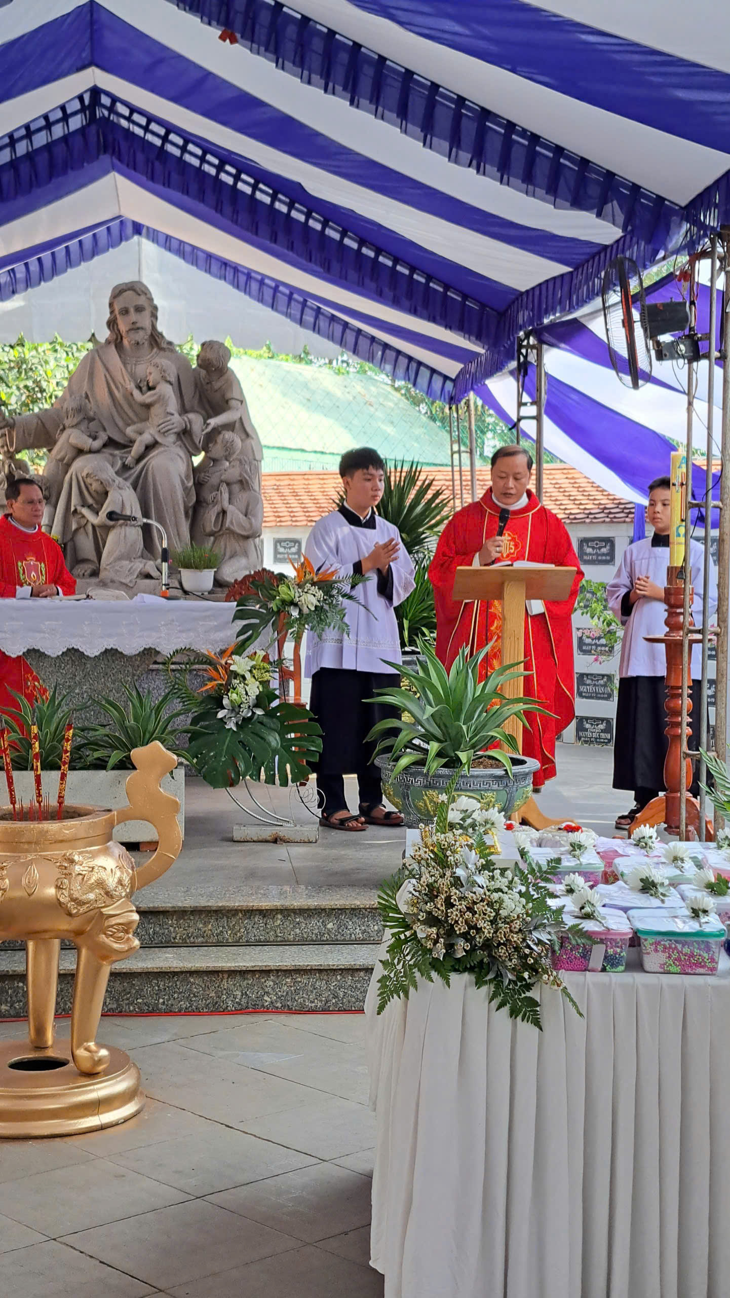 Sau thánh lễ, cộng đoàn cùng tham dự nghi thức làm phép và an táng 20 thai nhi. Những nén hương, những lời kinh, những giọt nước mắt lặng lẽ — tất cả được dâng lên như lời tín thác: