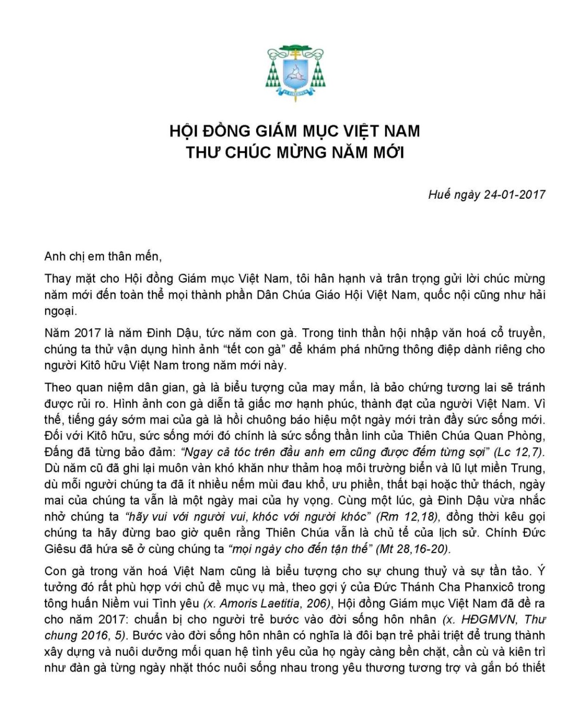 Thư chúc mừng Năm mới của Hội Đồng Giám Mục Việt Nam gửi Cộng đồng Dân Chúa